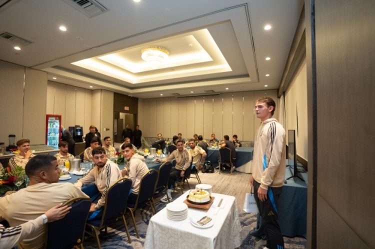 阿根廷队正在征战世预赛南美区,队内中场尼科-帕斯在9月8日度过自己的21岁生日,全队举办仪式为这位球员庆祝生日。
