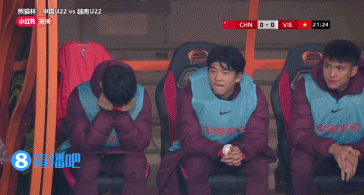 第21分钟,镜头给到U22国足替补席。↓